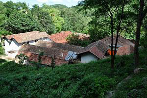 Am Fuße des Berges liegt das heutige Kloster in einer geschlossenen Gebäudegruppe (Foto). Teile davon lehnen sich an Felsen an und nutzen natürliche Felsüberhänge, aber der größte Teil ist gemauert. Die Gebäude mit den Versammlungs- und Wohnräumen der Mönche gruppieren sich um einen Innenhof. Vorbild für dieses Ensemble dürften die Residenzen des Hochland-Adels der Kandy-Zeit gewesen sein. Diese geschlossene Bauweise für Klöster ist jüngeren Datums, denn Bauten aus Steinen oder Ziegeln waren im Kandy-Königreich eben dem Adel oder den Räumen für die religiös verehrten Objekte eines Klosters vorbehalten, z.B. den Stupas oder anderen Reliquien- und Bilderhäusern oder den Zeremonialräumen. Die Mönchsunterkünfte selbst, meist Kuti genannt, waren dagegen aus vergänglichem Material errichtet wie die profanen Bauernhütten der Umgebung. Auch das Hauptkloster Malwatta in Kandy hat seit der späten Kandyzeit oder der frühen Kolonialzeit steinerne Mönchszellen, die um ein schattiges Atrium gruppiert sind.