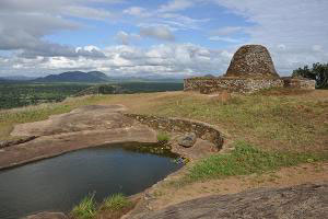 Reste einer antiken Klosteranalage noch aus der Anuradhapurazeit wurden auf dem Gipfelplateau gefunden, darunter ein Badeteich, ein kleiner Stupa (Foto) und Fundamente eines Baumtempels (Bodhigara). Yapahuwa als die älteste besiedelte Felsenspitze des Landes. Allerdings handelte es sich trotz des klangvollen Namens "schöner Felsenberg" in der klassischen Zeit wohl nie um ein bedeutendes Heiligtum.